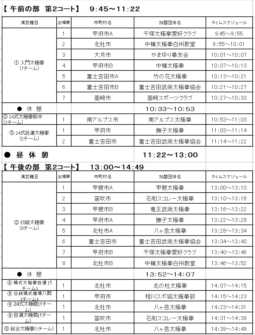 今回は、出場団体が多く、第1コートと第2コートを設定し競技を行います