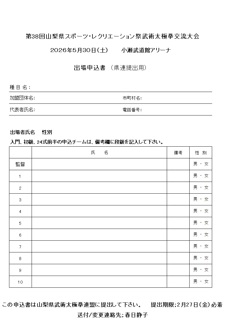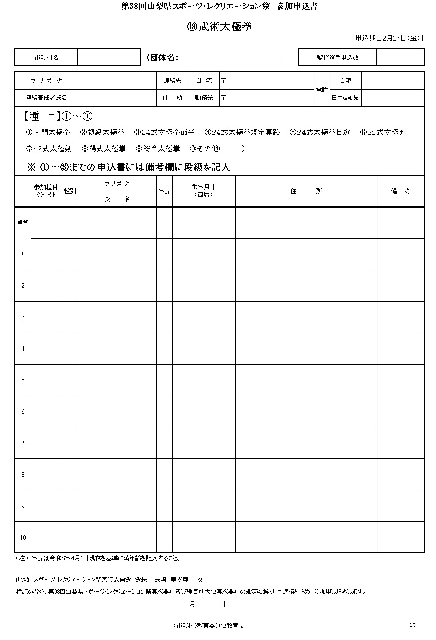 *山梨県武術太極拳連盟に会員登録をしている者に限る
